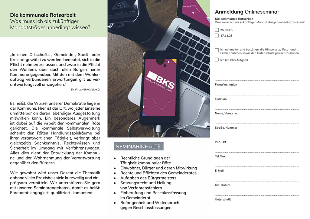 Es heißt, die Wurzel unserer Demokratie liege in der Kommune. Hier ist der Ort, wo jeder Einzelne unmittelbar an deren lebendiger Ausgestaltung mitwirken kann. Ein besonderes Augenmerk ist dabei auf die Arbeit der kommunalen Räte gerichtet. Die kommunale Selbstverwaltung