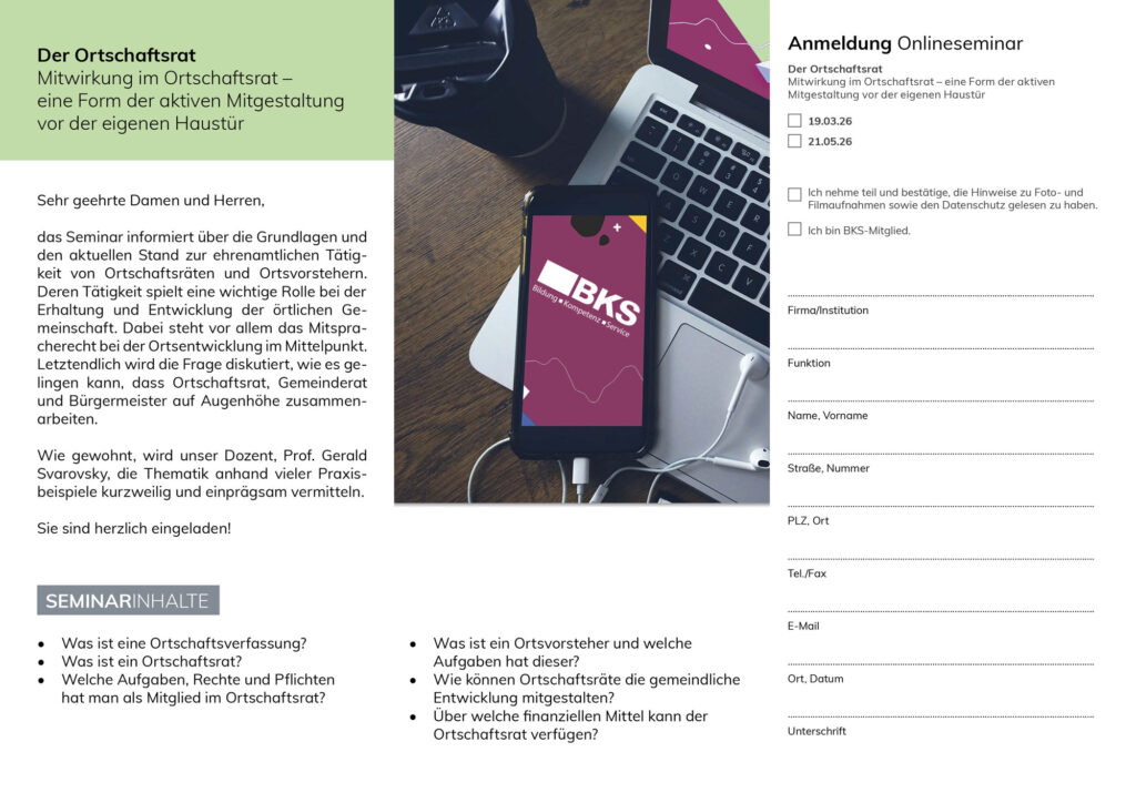 Onlineseminar – Der Ortschaftsrat – Mitwirkung im Ortschaftsrat