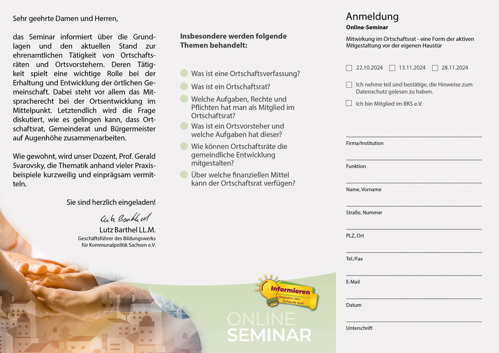 Onlineseminar Fit zum Start – Mitwirkung im Ortschaftsrat